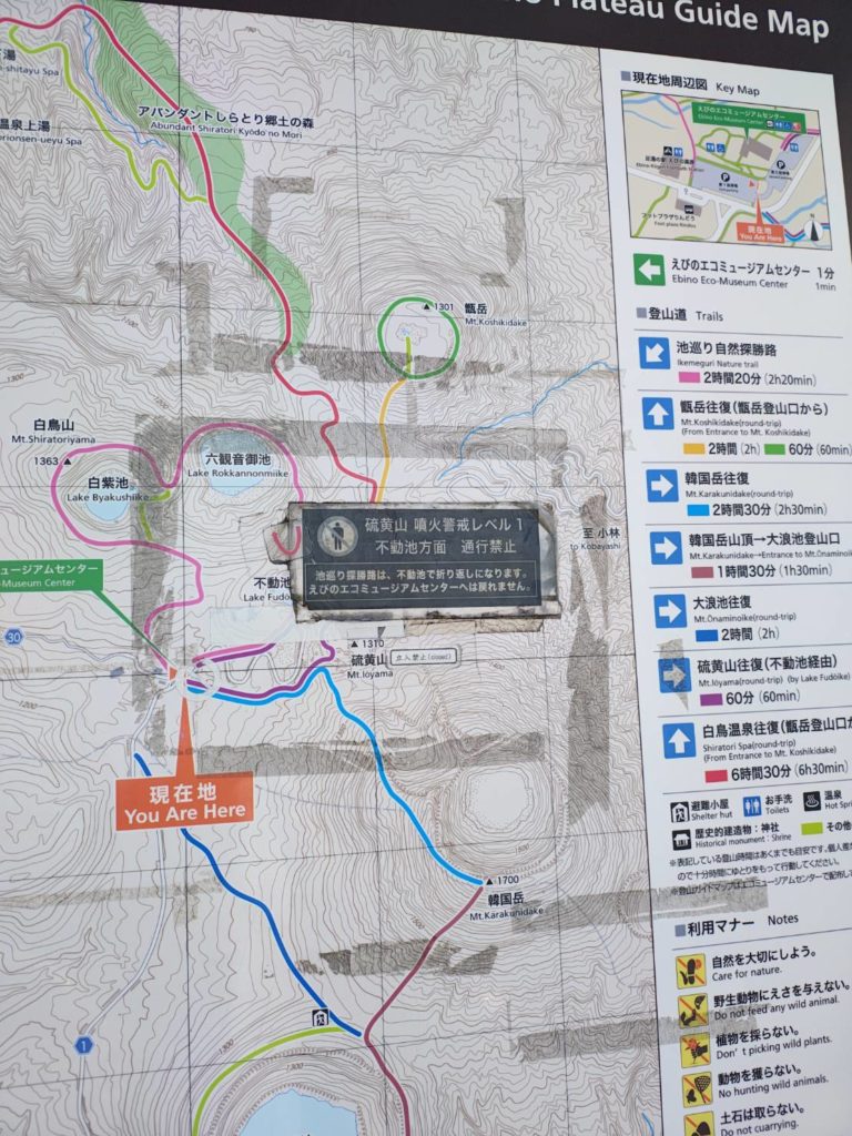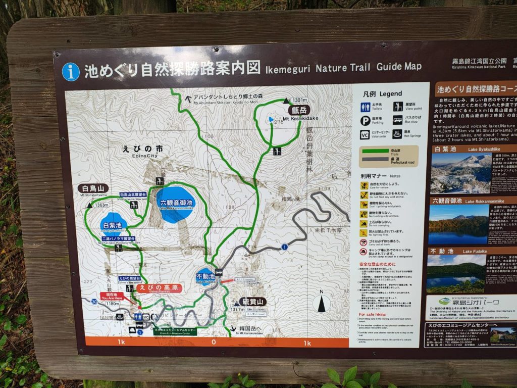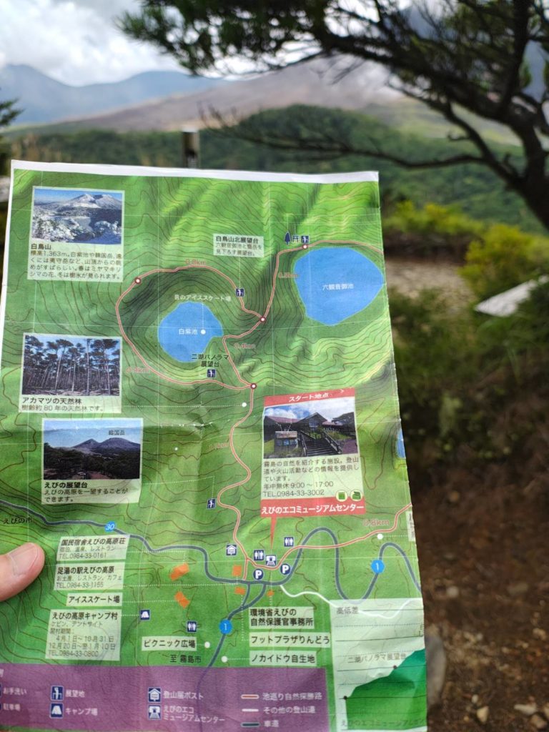 コンビニを物色してえびのエコミュージアムセンターで詳しく説明してもらって30分に登山開始