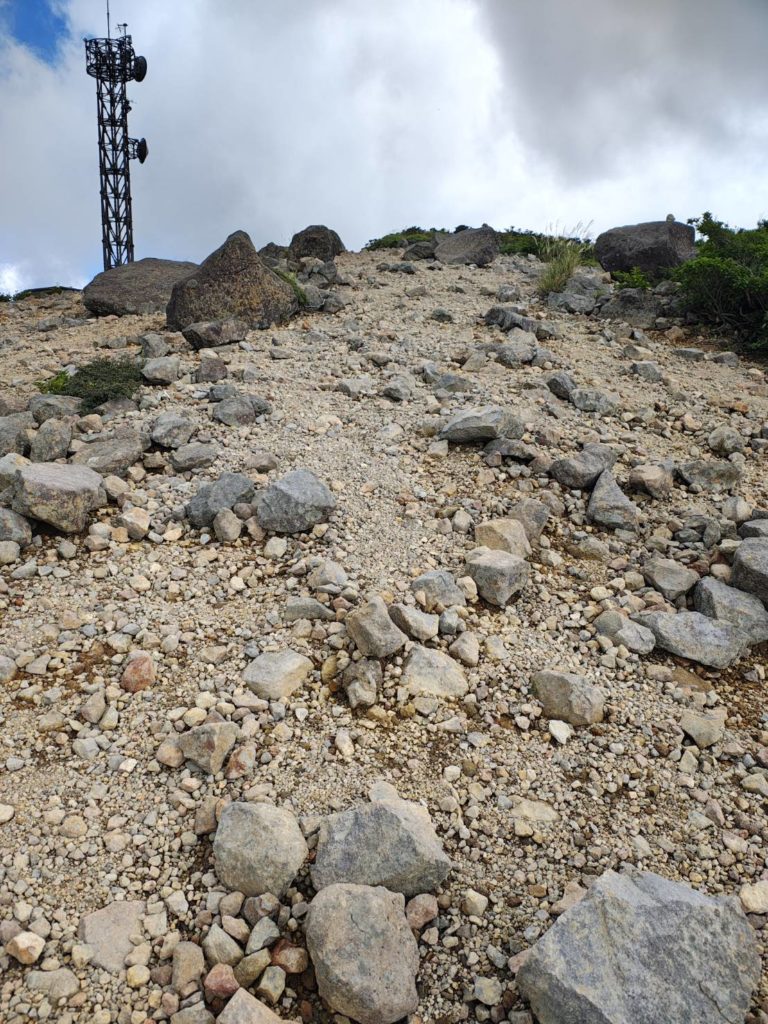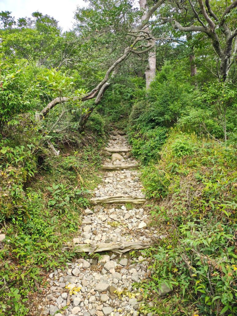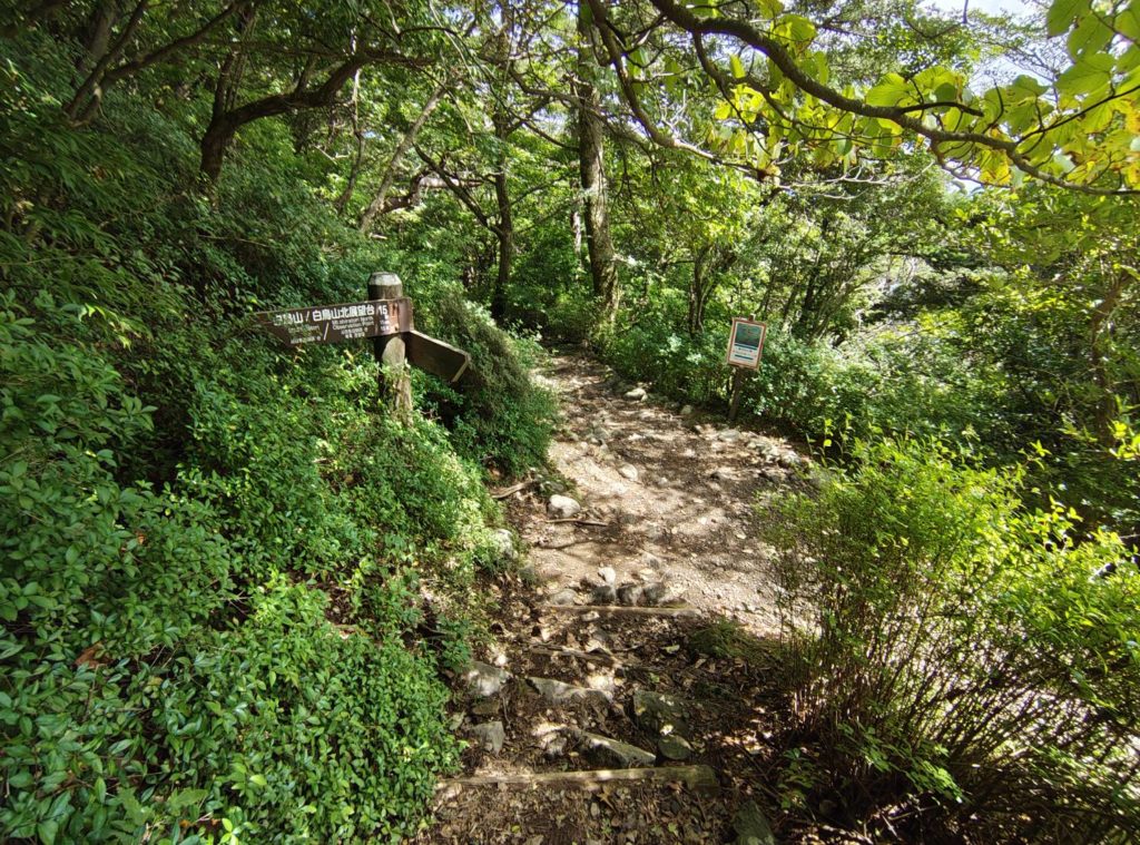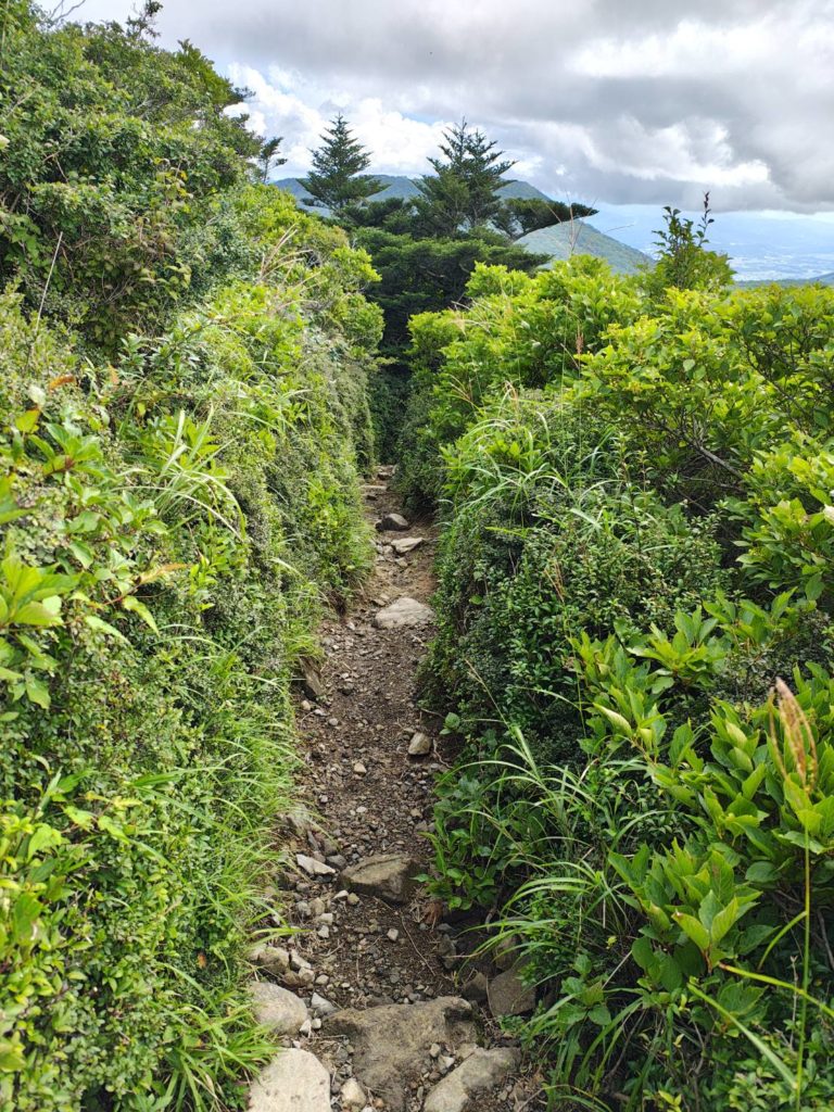 小雨が降ってきたが影響はなさそう、半袖で登ってる人は自分以外見かけない、みんな登山服だ、きっと理にかなった服装なんだろう。