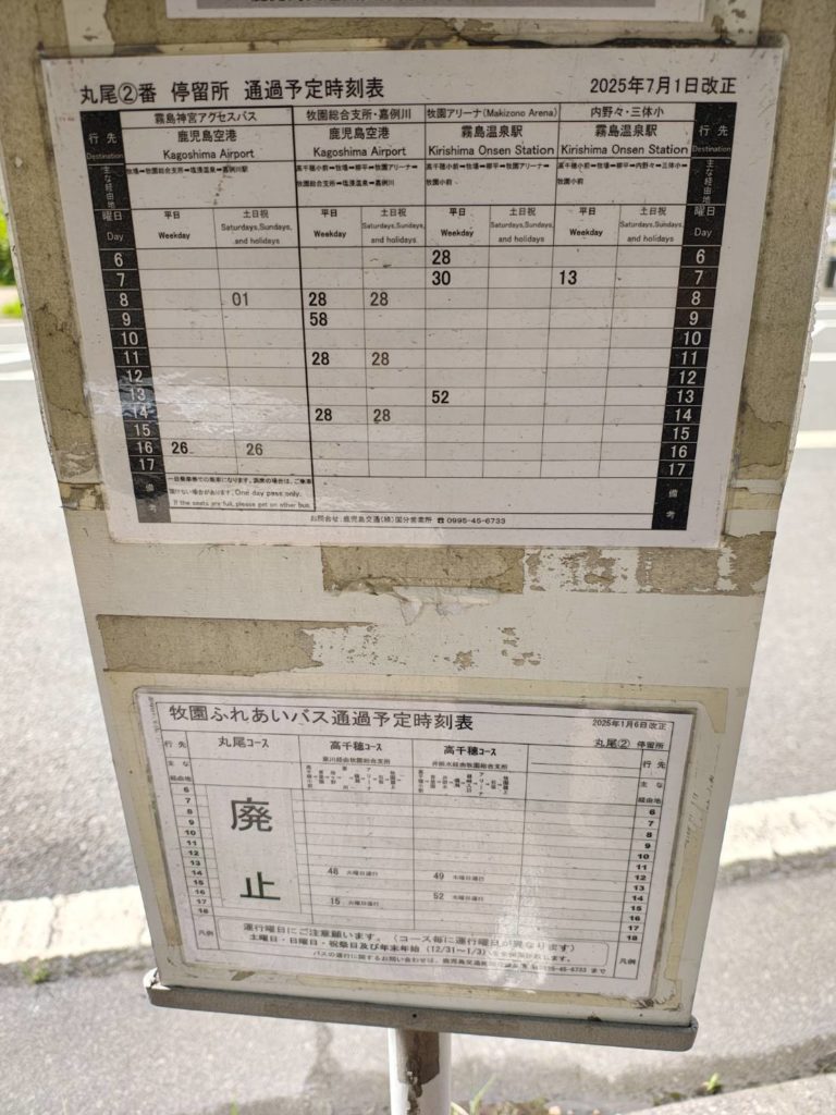 少し休んで13時のバスにのり、途中35分ほど時間調節して丸尾②まで